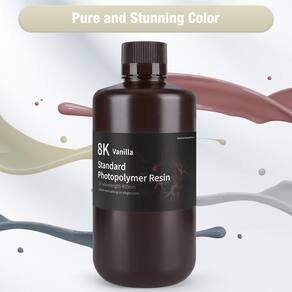 Características do produto: Curto tempo de cura, sem deformação durante a moldagem. Tem maior dureza e certa resistência após a cura. O produto acabado tem uma superfície lisa e alta precisão. Parâmetros do produto: Dureza da costa: 85-88D Força máxima (KGF): 143,3 ± 10% Resistência à tração (MPA): 33,781 ± 10% Deformação no ponto de força máxima (mm): 4,934 ± 10% Alongamento do ponto de rendimento (%): 4,555 ± 10% Alongamento na ruptura (%): 8,775 ± 10% Módulo de tração (MPA): 520,969±10%. Resistência máxima à flexão (MPa): 30,115 ± 10% Módulo Flexural de Elasticidade (MPa): 708,592±10% Resistência ao impacto (j/m): 24,2068±10% Faixa de absorção: 355 nm-410 nm Viscosidade: 200-400MPa·s Densidade: 1,05-1,25 g/cm³ Método de armazenamento. Guarde o produto em uma sala seca, ventilada e não corrosiva, e não em um local ensolarado ou úmido. A vida útil é de 2 anos. (A resina tem o melhor efeito quando armazenada a 25°-30°). - ?Resina padrão 8K?A resina padrão 8K tem alta fluidez e baixa viscosidade, o que melhora a velocidade de cura e a eficiência de impressão. Modelos complexos e de alta precisão podem ser facilmente impressos - ?Cura rápida e excelente fluidez? A resina rápida de impressão 3D tem alta fluidez e baixa viscosidade. Pode melhorar a velocidade de cura e encurtar o tempo sem qualquer impacto em sua qualidade. Faça você ter uma experiência de impressão eficiente - ?Baixo odor e materiais de qualidade? A resina é especialmente projetada para impressoras 3D, sua fórmula pode reduzir perfeitamente odores. Sem COV e sem gás irritante. Otimize a experiência do usuário durante o processo de impressão - ?Alta compatibilidade?A resina padrão ELEGOO é adequada para a maioria das impressoras 3D DLP/LCD. Funciona melhor com as impressoras 3D LCD ELEGOO, como Saturn 3, Saturn 3 Ultra, Mars 4, Mars 4 Ultra, Saturn 4, Saturn 4 Ultra, Mars 5, Mars 5 Ultra - ?Cores puras e vívidas? A resina ELEGOO é projetada para manter uma boa estabilidade, garantindo que a resina não se delamine ou se separe ao longo do tempo, o que torna as obras impressas puras e deslumbrantes