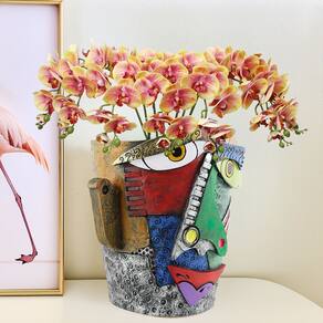 Material: Resina Peso: 650 g Tamanho: 15,6 x 15,6 x 18,5 cm Design abstrato cubista — Inspirado na arte ao estilo Picasso, este vaso de flores apresenta um motivo facial geométrico colorido que combina criatividade moderna com uso prático no plantio. Material de resina durável — Feito de resina premium, este vaso é leve, resistente, à prova d'água e resistente ao desbotamento ou rachaduras, ideal para decoração de longo prazo. Compacto e artístico — Com um tamanho de 15,6 x 15,6 x 18,5 cm, este vaso de flores é perfeito para suculentas, ervas ou pequenos arranjos florais, além de funcionar como um acento decorativo exclusivo. Uso interno e externo — Adequado para salas de estar, mesas, varandas, pátios ou jardins, adicionando um toque artístico à decoração moderna e boêmia. Decorativo e funcional — Este plantador funciona como uma escultura criativa e um recipiente prático, aprimorando mesas, prateleiras e arranjos de jardim com um estilo vibrante.