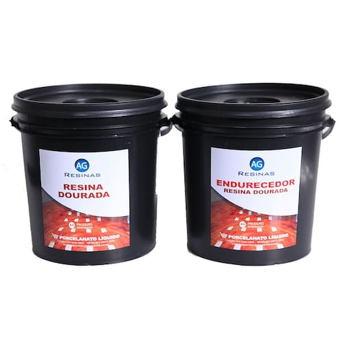 A Resina Epóxi Dourada AG é um Kit bicomponente de alta qualidade, pois o produto está puro e livre de diluentes, proporcionando muito mais brilho e qualidade no acabamento da aplicação. Contém um sistema de cura com endurecedor sem apresentar superfície oleosa blushing mesmo quando é utilizado à temperatura ambiente, sendo ou não em película. Com rendimento para 15 m² utilizado com o rodo PT2 com 1,5 mm de espessura. Componente A: 10 kg de Resina Componente B: 5 kg de Endurecedor Modo de Preparo: Em um balde adicionar o componente B sobre o componente A, obedecendo sempre a proporção de 2 partes do componente A para 1 parte do componente B, ou seja: 2 A / 1 B. Misture o componente A Resina com o componente B Endurecedor durante 5 minutos, após a mistura derrame todo o produto do recipiente na superfície desejada utilizando-o imediatamente. Marca: Ag Resinas