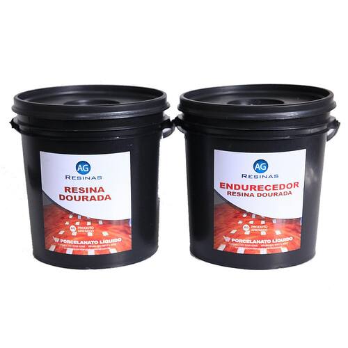 A Resina Epóxi Dourada AG é um Kit bicomponente de alta qualidade, pois o produto está puro e livre de diluentes, proporcionando muito mais brilho e qualidade no acabamento da aplicação. Contém um sistema de cura com endurecedor sem apresentar superfície oleosa blushing mesmo quando é utilizado à temperatura ambiente, sendo ou não em película. Com rendimento para 15 m² utilizado com o rodo PT2 com 1,5 mm de espessura. Componente A: 10 kg de Resina Componente B: 5 kg de Endurecedor Modo de Preparo: Em um balde adicionar o componente B sobre o componente A, obedecendo sempre a proporção de 2 partes do componente A para 1 parte do componente B, ou seja: 2 A / 1 B. Misture o componente A Resina com o componente B Endurecedor durante 5 minutos, após a mistura derrame todo o produto do recipiente na superfície desejada utilizando-o imediatamente. Marca: Não Informado