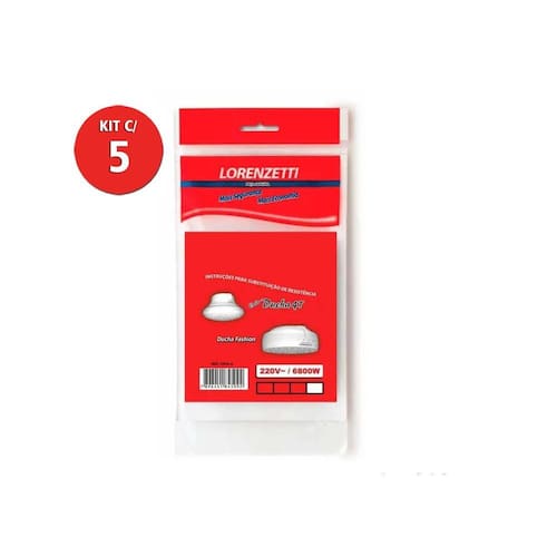 ** KIT EXCLUSIVO COM 5 RESISTENCIAS **Indicação:Resistência compatível com os modelos: Bella Ducha e Ducha Fashion.Conteúdo:Pacote com 1 unidadePotência:6800 wattsTensão:220 voltsAtenção:- Cada produto é desenvolvido com fiação interna para suportar uma determinada voltagem e potência.- Nunca coloque uma resistência que tenha características diferentes do padrão desenvolvido para seu produto.- As informações sobre voltagem e potência podem ser encontrados no próprio corpo do produto ou na embalagem do mesmo.Código: KIT-53036-5