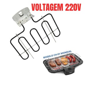- fornecedor e fabricante: mk mondial - material: fio de liga de níquel cromo Medidas do produto: 9cm x 32cm da resistência Medidas da estrutura de sustentação: 12cm x 6,5cm x 6cm - potência: 2000w Modelo de eletro que a peça atende somente a churrasqueira fabricada pela mk mondial no modelo ch-01 na voltagem 220v. Outros modelos indicados e testados: 2880-02 - churrasqueira ch-01 - mk mondial 2880-02-0c0 - churrasqueira ch-01 - mk mondial 2880-02-0f0 - churrasqueira ch-01 - mk mondial 2880-02-b00 - churrasqueira ch-01 - mk mondial 2880-02-b01 - churrasqueira ch-01- mk mondial 3040-02 - churrasqueira ch-02- pedestal- mk mondial 3040-02-0c0 - churrasqueira ch-02- pedestal - mk mondial 3040-02-0f0 - churrasqueira ch-02 - pedestal - mk mondial 3040-02-b00 - churrasqueira ch-02 - pedestal - mk mondial 3040-02-b01 - churrasqueira ch-02 - pedestal - mk mondial Voltagem deste anuncio 220v Atenção não é uma peça bivolt Dúvidas nos chame pelo campo de perguntas antes de efetuar pedidos.