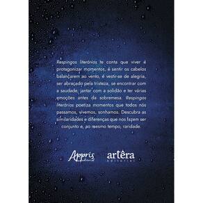 Respingos literários te conta que viver é protagonizar momentos, é sentir os cabelos balançarem ao vento, é vestir-se de alegria, ser abraçado pela tristeza, se encontrar com a saudade, jantar com a solidão e ter várias emoções antes da sobremesa. Respingos literários poetiza momentos que todos nós passamos, vivemos, sonhamos. Descubra as similaridades e diferenças que nos fazem ser conjunto e, ao mesmo tempo, raridade.