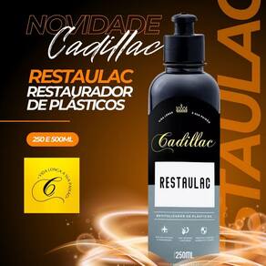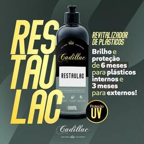 Revitalizador de Plásticos Internos e Externos Restaulac 500ml CadillacO revitalizador de plásticos RESTAULAC proporciona brilho e proteção duradouros aos plásticos internos e externos do veículo. RESTAULAC restaura para-choques, para-lamas, painéis, laterais de portas, entre outras partes. Sua formulação oferece uma camada de proteção para prevenir contra o ressecamento e desgaste, além de possuir super repelência à água.Características:- Uso Interno e Externo- Brilho intenso e duradouro- Protege contra danos causados pelo tempo- Fácil aplicação- Versátil- Embalagem: 500mlModo de usar:1 - Agite bem antes de usar2 - Certifique-se que a superfície esteja totalmente limpa antes de aplicar.3 - Aplique uma camada fina de RESTAULAC com um aplicador de espuma ou toalha de microfibra.4 - Remova o excesso e aguarde a total secagem do produto.