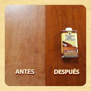 - Restor-A-Finish é uma fórmula exclusiva que penetra no acabamento que restaura acabamentos de madeira enquanto mistura pequenos arranhões, manchas e abrasões