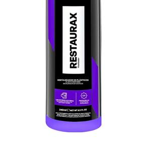 O Restaurax Restaurador e Renovador de Plástico da Vonixx é a solução ideal para quem busca revitalizar e proteger as superfícies plásticas do seu veículo. Com uma fórmula avançada, este produto proporciona um acabamento brilhante e duradouro, realçando a beleza do seu automóvel. MODO DE USO: 1. Limpar bem a superfície e em seguida aplicar o produto com um aplicador de espuma até a completa restauração. Se necessário, repetir a operação. 2. Para manter o plástico sempre novo, repetir a aplicação do produto a cada 60 dias na parte externa e a cada 6 meses na parte interna. A NR Estética oferece uma de 7 dias em seus produtos Marca: Não Informado