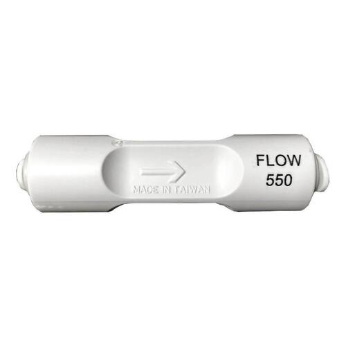 O restritor de fluxo restringe a saída da água pressurizada na carcaça criando sobre pressão necessária para que ela passe pela membrana. Muito utilizado na saída de rejeito do sistema de Osmose Reversa.