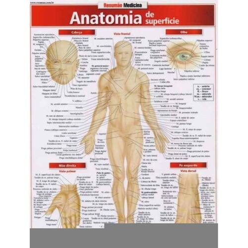 Cerca de duas dezenas de imagens, que permitem centenas de identificações anatômicas pelo lado externo do corpo. Vista frontal, vista posterior e vista lateral do corpo humano. Vista frontal e vista lateral da cabeça, com destaques para o olho, a orelha, a boca e o nariz. Braços e pernas, com destaques para a mão (vista palmar e vista dorsal) e o pé (vista dorsal e vista plantar). E ainda: axila e seio, quadril feminino e quadril masculino.