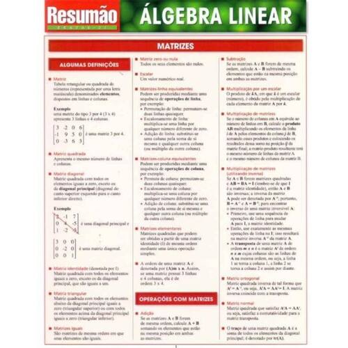 Matrizes: definições (matriz, matriz quadrada, matriz diagonal, matriz identidade, matriz triangular, matrizes iguais, matriz zero ou nula, escalar, matrizes linha-equivalentes, matrizes coluna-equivalentes, matrizes elementares). Operações com matrizes: adição, subtração, multiplicação por um escalar, multiplicação de matrizes, matriz ortogonal, matriz normal. Matrizes complexas. Propriedade das matrizes. Equações lineares. Determinantes. Vetores: norma de um vetor, operações com vetores, propriedades e teoremas de vetores. Resolução de sistemas lineares através de matrizes. Retas.