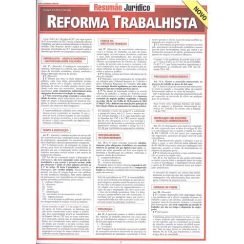 O mais novo título da coleção Resumão Jurídico explica as principais mudanças da reforma trabalhista, aprovada em julho deste ano, que provocou profundas alterações nas relações de trabalho. O que exatamente vai alterar a vida de trabalhadores e empresários? O Resumão Reforma trabalhista explica as principais inovações feitas na CLT, mencionando ainda as Súmulas que deverão ser adequadas ao novo texto da lei. Todas as informações importantes para você ficar por dentro da reforma, que entra em vigor a partir de 13 de novembro.