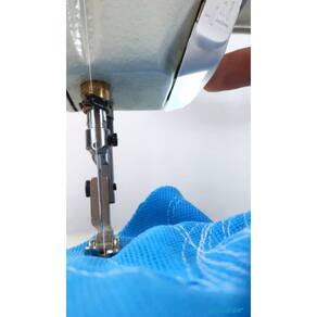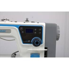 Maquina de costura reta 1 agulha, direct-drive, ponto fixo com posicionador de agulha, painel e controlbox embutidos no cabeçote, com sistema de meia pontada, alavanca manual para retrocesso, lançadeira rotativa padrão, controle da luminosidade da luz de led com 3 estágios, elevação do calcador de ate 13mm, velocidade 5000rpm, comprimento do ponto de ate 5mm, com tampo de mesa, estante com rodinhas, versão 220V,