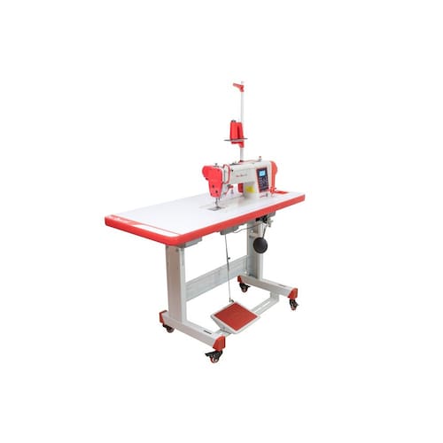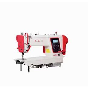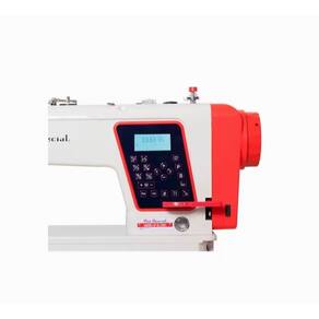 Máquina de costura industrial reta eletrônica com motor de passo, 4 motores, controle de pontos, retrocesso, levantamento do calcador eletrônico, corte de linha automático, painel digital, entrada USB, cárter blindado e cabeçote alongado de 30cm.Painel