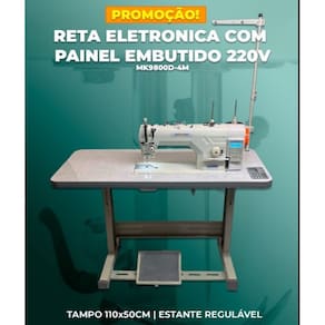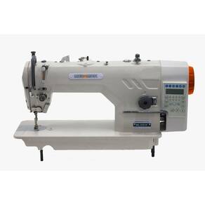 Máquina Reta Industrial Eletrônica com caixa de controle e painel acoplados ao cabeçote da máquina. Simplificando a montagem para alta produção. Possui uma agulha; Ponto fixo com motor direct drive; Levantamento de calcador; Retrocesso automático; Corte de linha automático semi-rotativo; Linhas grossas. Posicionamento de agulha superior e inferior, velocidade de 5000 pontos por minuto com baixo ruído, executando costuras com ponto de 5mm e lubrificação automática. Ideal para tecidos leves e médios. Motor direct drive capaz de economizar até 60% de energia comparado com motores convencionais, além de garantir maior agilidade na produção, tendo ainda parada superior e inferior.
