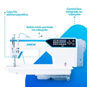 Máquina de Costura Reta Eletrônica Jack A5E - 220v A Jack traz uma inovação tecnológica ao mercado de máquinas de costura mundial que sem dúvida servirá de “marco” para uma nova tendencia de equipamentos computadorizados com inteligência para interagir cada dia mais com o operador, diminuindo intervenções técnicas, aumentando a qualidade e conformidade de pontos e ainda fornecendo dados de produção a softwares e aplicativos através de conexões WiFI. (sem fio)