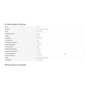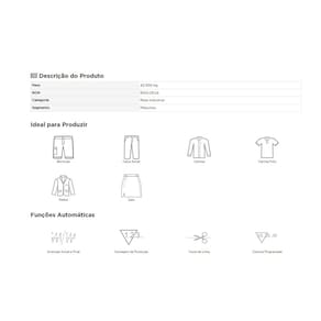 Painel Tecla Material Leve, Médio e Pesado Motor Direct Drive Potência do Motor 550 W Tensão 220 V Velocidade 5.000 rpm Tipo de Ponto Fixo Comprimento do Ponto 7 mm Número de Agulhas 1 Agulha Tipo de Agulha DBx1 Sistema de Transporte simples Tamanho da Lançadeira Padrão- Pequena Tipo de Lançadeira Japonesa Altura do Calcador 5.5/13 mm Cárter Aberto Tanque de Óleo Lubrificação Automática Descrição do Produto Categoria Reta Industrial Segmento Máquinas A Montagem é Feita por conta do Comprador !