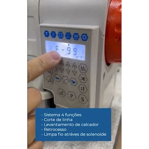 Posicionamento de agulha superior e inferior, velocidade de 5000 pontos por minuto com baixo ruído, executando costuras com ponto de 5mm e lubrificação automática.