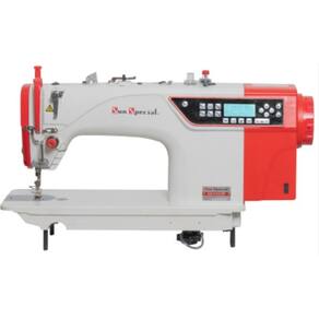 Máquina de Costura Reta Eletrônica Direct Drive Motor Passo Pontos Decorativos Sun Special. Sistema Inovador com Tecnologia de Motor de Passo, muito mais silencioso e macio para costura, que garante o tamanho de ponto mais preciso e ajustável pelo painel, retrocesso de alta qualidade e 9 pontos decorativos na memória. Design Renovado sem alavanca de retrocesso. Retrocesso automático ou com simples toque próximo a barra de agulha, controlado pelo Motor de Passo. Motor Direct Drive com regulagem de velocidade. Painel de fácil configuração com voz em português. Ajuste do tamanho do ponto via Motor de Passo, muito mais preciso e fácil de configurar pelo painel. 09 Pontos Decorativos, via motor de Passo. Perfeita para uso em costura reta e em lingeries. Velocidade máxima: 5000ppm. Tamanho máximo do ponto: 5mm. Sistema de alimentação macio, suave e muito preciso. Acabamento Impecável. Tecnologia de baixo ruído, costure silenciosa e menos vibrações. Retrocesso, levantador de calcador e corte de linha automáticos. Control Box acoplado ao cabeçote. Parada de Agulha em cima e em baixo programável. Iluminação de LED sem sombras na costura e ajustável em 3 níveis de luminosidade. Entrada USB para carregamento de Smartphone. Enchedor de bobina embutido ao cabeçote. Lubrificação automática. Mesa personalizada Sun Special com rodinhas. Funções Automáticas: Controle de Velocidade; Parada de Agulha; Corte de linha automático; Levantador de calcador Por motor de Passo; Posicionamento de agulha; Arremate inicial e final; Costura programada.Alça retrátil