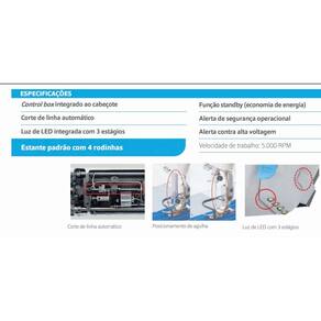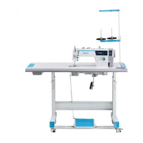 Máquina de costura industrial reta com corte de linha automático, motor Direct Drive de economia de energia, alta estabilidade elétrica (110V a 295V), potência de alto torque (5,5 Nm) e sistema avançado Fortress Electric Control + Motor Mighty Ape. Ideal para tecidos leves a médios.Funções