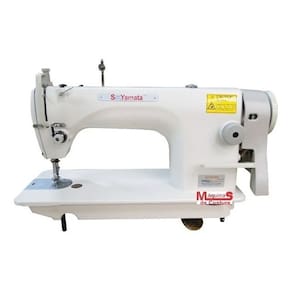 A máquina reta industrial Yamata permite realizar costuras com velocidade de 5.500 pontos por minuto com baixo ruído, executando costuras com ponto de 5mm. Possui motor bivolt e lubrificação automática.