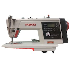 Máquina de costura reta industrial com motor de passo, alta velocidade (até 4.500 pontos/min), versátil para diversos tecidos, lubrificação automática, corte de linha automático, arremate programado, motor Direct-Drive silencioso e econômico, controle de velocidade, parada de agulha e levantador de calcador automático. Possui 9 pontos decorativos.Funções