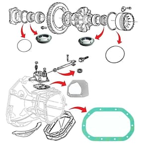 Conteúdo: 01 - junta da tampa do diferencial 02 - retentores laterais do câmbio 01 - anel da luva do diferencial 01 - anel do mancal de rolamento 01 - retentor do trambulador 01 - junta da tampa do trambulador