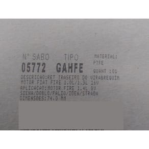 Retentor (flange) traseira 05772GAHFE Códigos (PN) da montadora: Fiat 3500V, Fiat 403 500F e Fiat 552 108 58. Diâmetro da seção para o eixo virabrequim: 74mm.