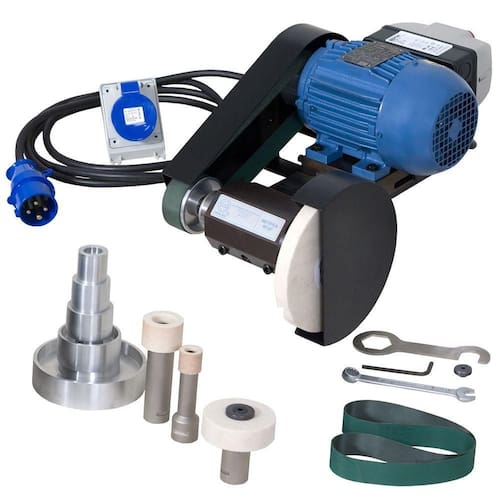 - Cada retífica é fornecida com os seguintes acessórios: 2 polias motoras, 5 polias de mandril, 2 correias planas de material sintético, 1 porta-rebolo para retificação externa com contra-pesos para balanceamento, 3 portas-rebolo para retificação interna, 1 rebolo reto para retificação externa, 1 rebolo reto para retificação interna, 2 rebolos de copo para retificação interna, 1 extrator de polia e porta-rebolo, 1 chave para sextavado interno, 1 chave especial, 1 chave combinada, plug e tomada do tipo STECK;