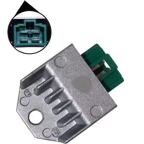 A principal função do regulador / retificador de voltagem é receber a energia criada no magneto (alternador) e alterar a característica da corrente elétrica de alternada para continua. assim sendo, esta energia poderá ser utilizada no sistema eletrônico / elétrico da moto como, por exemplo, manter a carga da bateria.