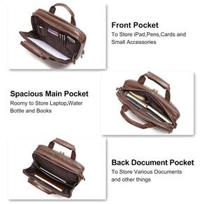 Dimensão e material 16,5 13,2 5 polegadas de peso, 41 x 33 x A pasta masculina é feita de couro de alta qualidade para ser elegante, profissional e de aparência profissional com grande capacidade. O cinto na parte de trás da bolsa mensageiro de negócios dos homens pode caber facilmente no carrinho de bagagem, trazendo conforto para viagens de negócios e viagens. Multifunções Esta pasta para homem tem três bolsos principais com funções diferentes, um bolso traseiro para documentos, um bolso central para laptop e um bolso frontal multifuncional para atender todas as suas necessidades de negócios. O bolso frontal da pasta de couro tem um design especial, 2 bolsos pequenos, 3 porta canetas e 4 porta cartões para ser mais funcional. Alças removíveis de atualização A alça de malas para laptop de computador para homens tem 2 fivelas ajustáveis para manter a almofada no lugar certo de seu ombro para que você se sinta confortável. Você pode usá lo como uma pasta de homem, uma bolsa de ombro e uma bolsa crossbody de acordo com suas preferências. Durável e à prova dágua A bolsa de mensageiro para laptop é forro de tecido durável e as partes de metal são feitas de bronze. A parte de metal torna a pasta mais durável para suportar mais peso. O couro à prova dágua pode ser com mau tempo, sempre que você levar coisas importantes para sair Marca: Não Informado