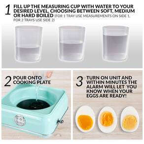 COZINHA COM UM TOQUE Basta encher o copo medidor até o nível de água desejado, escolhendo entre leve, médio ou cozido, ligue o e em poucos minutos o alarme avisará que o café da manhã está servido CAPACIDADE DE 14 OVOS Cada bandeja de ovos permite que você cozinhe até 7 ovos grandes por vez, proporcionando resultados saudáveis e consistentes do jeito que você gosta RECEITAS DE OVOS CELENTES Esta panela de ovos pode fazer uma variedade de ovos, como ovos moles, médios ou duros, claras de ovo, ovos pochê, ovos mexidos, omeletes, várias saladas, ovos cozidos, sanduíches de ovo e pode até ser cozinhar legumes e bolinhos no vapor O prato perfeito para qualquer café da manhã, jantar ou evento especial DESIGN RETRO CLÁSSICO Esta unidade tem uma aparência retro que apresenta um medidor de energia iluminado por LED na frente que permite saber quando a unidade está pronta para iniciar e quando está funcionando, bem como uma alavanca liga , desliga cromada elegante no lado ALÇAS FRIO TOUCH Mantenha suas mãos seguras com as alças cool touch, permitindo que você abra e feche a tampa sem se queimar INCLUÍDO Copo medidor com ponta de perfuração de ovo, duas bandejas de ovos e uma tigela de ovos furados , mexidos estão incluídos FÁCIL DE LIMPAR bandejas e tigela para ovos removíveis, tornando a limpeza muito fácil Marca: Não Informado