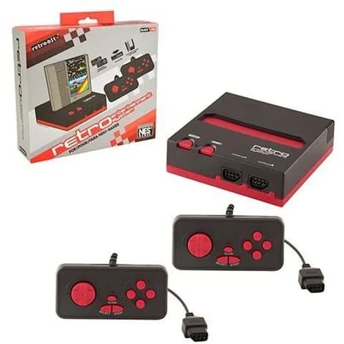 Compatível com seus jogos NES clássicos favoritos! Os cartuchos são carregados na parte superior do sistema, e não na parte frontal. Projetado para se ajustar aos seus cartuchos para garantir que eles não caiam do lugar. Design prateado e preto. Vem com 2 controladores.
