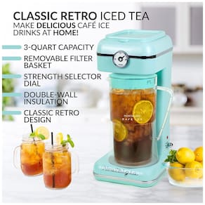 PREPARAÇÃO FINAL Desfrute de bebidas suaves e deliciosas em casa Prepara os melhores cafés gelados, lattes gelados, chá gelado, limonada, água aromatizada e muito mais DESIGN RETRO CLÁSSICO Esta unidade tem um visual retrô que apresenta um medidor de força cercado de cromo na frente, bem como uma alavanca liga , desliga cromada na lateral CAPACIDADE DE 3 LITROS A jarra de plástico com isolamento duplo comporta até 12 xícaras e possui uma alça grande para facilitar o levantamento e o derramamento. Inclui uma tampa de três posições que gira para derramar livremente, derramar com protetor de gelo ou fechado CESTA DE FILTRO E CHUVEIRO O cesto de filtro removível funciona com café moído fresco, saquinhos de chá e chás de folhas soltas, enquanto o chuveiro é projetado para saturação completa e extração de sabor ideal SELETOR DE FORÇA Escolha a intensidade de sabor desejada usando o seletor de força ENHANCER DE SABOR Adicione limão, ervas e outros adoçantes à câmara de extração de sabor para aprimorar ainda mais os sabores AUTO SHUT OFF Quando a preparação é feita, a unidade é programada para desligar automaticamente OPERAÇÃO SIMPLES Evite ter que lidar com um painel de controle complicado há apenas um botão cromado elegante para ligar ZENAMENTO ARRUMADO zenamento conveniente do cabo na parte inferior da unidade INSULSÃO DE PAREDE DUPLA A construção transparente de parede dupla mantém as bebidas frias por horas Marca: Não Informado