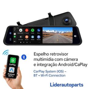 Retrovisor com carplay e android auto e câmera de ré Olá somos a liderauto parts uma loja especializada em acessórios automotivo, desde já agradecemos pela preferência. Retrovisor 12 com android auto carplay dvr bluetooth fm transmiter e camera de ré Este retrovisor é perfeito para você que procura conforto e tecnologia na hora de dirigir, pois ele conta com sistema android auto e carplay com diversas funcionalidades transmite os principais recursos do seu celular para o retrovisor. além disso o retrovisor acompanha câmera de percurso e câmera de ré, trazendo mais segurança para a sua direção. Aplicativos são compatíveis com android auto / carplay: Caracteristica: Tamanho da tela: tela de 10.26 polegadas com resolução da tela 1600600p Memória: 32gb de memória interna e 128mb de mémoria ram. Carplay: Auto: android Câmara frontal: 4k 38402160p, s/25fps Câmera de ré: 1080p 1920+1080, s/25fps Wifi Bluetooth Rádio am e fm Formato de vídeo: mp4 Touch screen super sensível ao toque Entrada auxiliar Lente: gravação de câmeras duplas ao mesmo tempo Cabo de força: conecta ao acesdendor de Tensão padrão: dc5v Suporte de cartão memória máximo 256g sd com classe 10 ou acima não acompanha Consumo de energia: menos de 10w luz da tela e duas câmeras de gravação Temperatura de trabalho: -20-70 Celsius Temperatura de armazenamento: -30-80 Celsius Atenção idioma : Suporta multi idioma: chinês, chinês tradicional, inglês, russo, japonês, coreano, vietnamita, tailandês, alemão, espanhol, francês e italiano. imagem ilustrativa Homologação Anatel: 001941400160 Marca: Não Informado