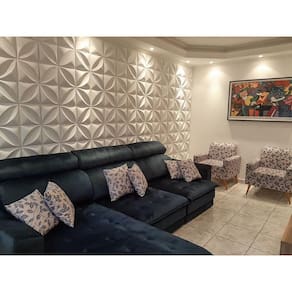 Revestimento 3D Impecável de parede Elegância em Relevo 54 placas Quantidade do anuncio: 54 placas Modelos: PETALAS As placas são de poliestireno PSAI plástico Tamanho da placa: 50cmx50cm Espessura: 0.5mm