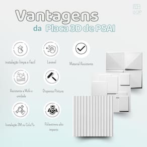 Com peças de 75cm x 48cm, essas placas são ideais para transformar interiores e exteriores com sofisticação. Nossas placas possuem acabamento de alta qualidade, são leves, resistentes e fáceis de instalar, proporcionando um toque moderno e exclusivo ao seu espaço. Além disso, aceitam pintura com tinta à base de água, acrílica, acetinada, fosca ou spray, permitindo personalização total para combinar com sua decoração.