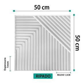 Revestimento 3d Plastico Pvc Decoracao Luxo Kit 10m Ripado Quantidade do anuncio: 10m 40 placas Modelos: RIPADO Todas as placas são da cor branca As placas são de poliestireno PSAI plástico Tamanho: 50x50cm exceto modelos piramidal e prisma 48x 48cm Espessura: 1 mm
