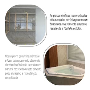 Cada placa cobre aproximadamente 2,97m² e é ideal para esconder imperfeições como marcas de mofo, infiltrações, rachaduras e revestimentos antigos. Pode ser aplicada diretamente sobre cerâmicas existentes, evitando a necessidade de quebra-quebra ou nivelamento do rejunte, tornando a instalação limpa e eficiente.