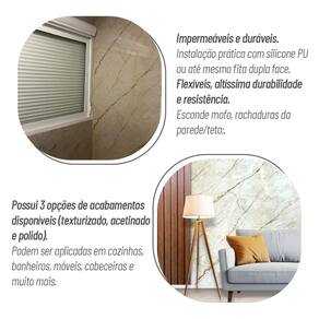 O Revestimento Decorativo Premium Placa Marmorizada Calacatta Crema oferece o visual sofisticado do mármore natural, sem o custo elevado, peso excessivo e manutenção complicada. Com acabamento polido e espessura de apenas 0,3cm, esta placa flexível é leve, fácil de instalar e pode ser recortada com um simples estilete.