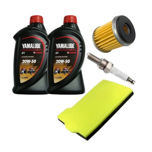 Kit Composto Por: 2 Litros de Óleo Yamalube Mineral 20w50 1 Vela Ignição Importada 1 Filtro Óleo Importado 1 Filtro Ar Importado