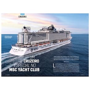 Cruzeiro PerfeitoConheça as mordomias do MSC Yacht Club, a melhor forma de viajar pelos mares do Brasil e do mundo.Veja também nesta edição- Novidade! Parque dos Dinossauros em camboriú- Viajamos no exótico Cruzeiro do Pantanal- Egito, uma rota incrível pelo Cairo, Aswan, Luxor e Alexandria- As surpresas do Epic Universe, novo megaparque da Universal em Orlando