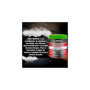 REVITALIZADOR PROT RENOVA PROT RENOVA é um produto sem silicones desenvolvido para renovação de para-choques, frisos e borrachas. É capaz de remover manchas de ceras e massas de polir. Revitalizador de plásticos e borrachas para o seu automóvel