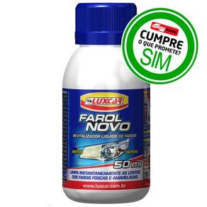 Com o Revitalizador Líquido Farol Novo Luxcar os faróis do seu carro ficam novos em minutos, sem a necessidade de trocá-los, lixá-los ou poli-los. Remove o fosco, o queimado e o amarelado das lentes, melhorando o desempenho e luminosidade dos faróis, é muito fácil de usar, é só aplicar com auxílio de uma estopa e pronto. Seu farol novo em minutos e sem esforço!