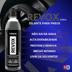 O Revox Vonixx é um selante desenvolvido especialmente para revitalizar e proteger os pneus, promovendo brilho intenso e aparência renovada com alta durabilidade. Ideal para quem busca um acabamento profissional com praticidade e eficiência na aplicação.