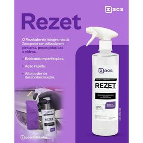 Rezet foi desenvolvido para ser utilizado entre as etapas do polimento em pintura automotiva. Tem como principal finalidade remover excessos de compostos polidores na peça polida, a fim de revelar a real situação da pintura após o polimento. O produto também poderá ser utilizado para descontaminar peças plásticas e limpar diversas superfícies sem danificá-las.