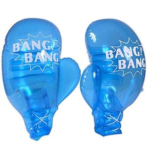 Acerte-os com uma esquerda, bata 'em com uma direita! Seus amigos vão pensar que essas luvas grandes são um nocaute! Basta estourar a aba, inflar e você está pronto para entrar no ringue. Vendido deflacionado. Vendido pela dupla. Para maiores de 3 anos.