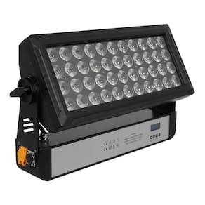Ribalta P5 44X10W Rgbw Outdoor One LightMarca: one light O one light p5 é um washlight profissional com mistura de cores rgbw. Um total de 44x 10w leds de alta potência geram uma saída de luz de 23500 lúmens 43° .O one light p5 está disponível em três variantes diferentes de ângulo de feixe. A versão standard de 43° está disponível, bem como uma versão de 21° e 15°. A caixa à prova de intempéries ip 65 da lanterna pode ser inclinada num ângulo de até 110° e pesa apenas 8,9 kg. Um suporte de chão para montagem em suporte e abraçadeiras omega para montagem suspensa já estão incluídos.A washlight p5 é controlada através dos programas autónomos integrados, rdm e dmx. 2 modos dmx estão disponíveis para o usuário 4 e 8 canais .Características:Led washlight com mistura de cores rgbwLeds de alta potência 44x 10wPotência do led: 440wLúmen: máx. 23500Ângulo de feixe: 43°Ip 65 caixa para uso externoModo stand aloneFuncionalidade dmxDmx 512 4 e 8 canais Exibição gráficaSuportes de piso incluídosAbraçadeiras incluídasCabo de entrada/saída ip65 dmx incluídoTensão: 208-250v nominal 50/60hzPré-garra incluído.