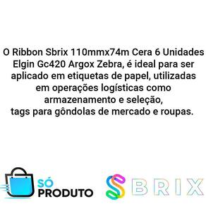 DESCRIÇÃO O Ribbon Sbrix 110mmx74m Cera 6 Unidades Elgin Gc420 Argox Zebra, é ideal para ser aplicado em etiquetas de papel, utilizadas em operações logísticas como armazenamento e seleção, tags para gôndolas de mercado e roupas.