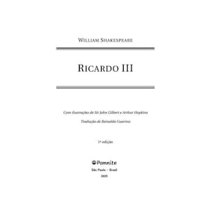 Ricardo III, tragédia histórica de Shakespeare, ambientada no desfecho da Guerra das Rosas, explora os abismos da ambição, traição e manipulação. A narrativa gira em torno de Ricardo, Duque de Gloucester, um vilão astuto e carismático cuja sede de poder o leva a conspirar implacavelmente para conquistar o trono da Inglaterra. Com intrigas engenhosas, ele elimina rivais, manipula aliados e orquestra assassinatos, incluindo o trágico destino de seus jovens sobrinhos, os príncipes na Torre. A inteligência afiada de Ricardo contrasta com sua crueldade, enquanto ele navega por um cenário político traiçoeiro, marcado por conflitos civis e lealdades frágeis. Contudo, sua ascensão meteórica é seguida por uma queda vertiginosa, à medida que inimigos se unem e sua consciência o atormenta. A peça culmina na dramática Batalha de Bosworth, onde Ricardo enfrenta seu destino inevitável. Com diálogos cortantes e uma profunda análise da natureza humana, Ricardo III retrata o poder corruptor e as consequências devastadoras da ambição desmedida, consagrando-se como uma obra-prima do teatro shakespeariano. Marca: Não Informado