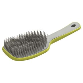 Possui cerdas flexíveis que reduzem a quebra dos fios e passagem de ar que auxilia na secagem.