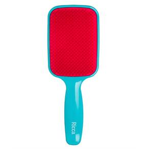 Escova de cabelo com cerdas flexíveis de dupla altura. Para desembaraçar todos os tipos de cabelo. As cerdas de dupla altura deslizam mais suavemente pelas mechas evitando puxar ou quear os fios do cabelo.
